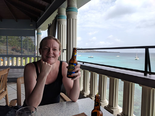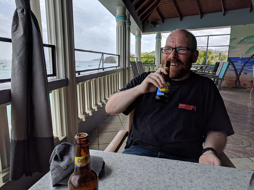 Feeling ever more delicate, and odd to be wearing jeans, we were done packing way before checkout time. With basically no way to kill time, and 3 hours until our cab, we knocked on the landlord’s door and left our stuff just inside his front door, then buggered off up the road to the Regis Palms, which got a much bigger thumbs up of recommendation than our originally planned trip back to Cuisine Spice Isle in the other direction.