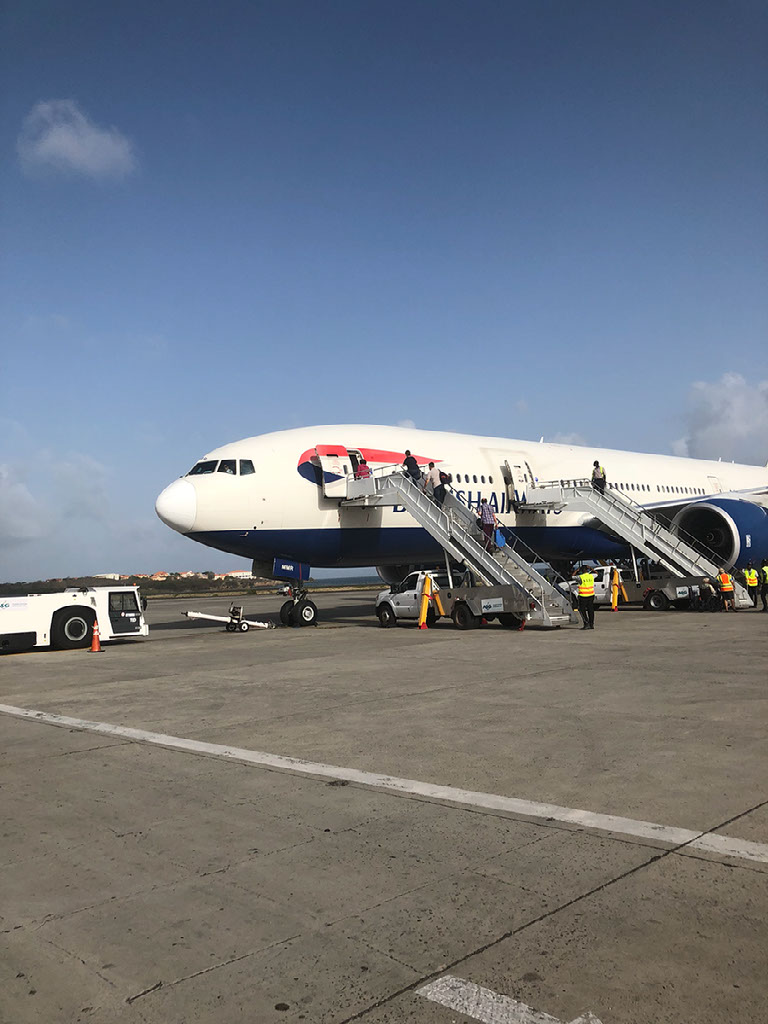 The rum punch is fantastically strong, and alongside the couple of glasses of champagne I’m feeling particularly good about the flight now. At 4.30pm it’s announced that boarding is ready, requiring a walk across the tarmac to our 777.