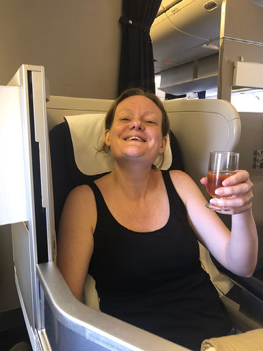 Frankly, having drunk so much in cabin air I have no right to feel as great as I do. Despite appearances, Helen tells me she barely slept at all, though we both agree it’s been a very smooth ride. Her impressions of the seat are largely positive, to the degree that paying (with miles or cash) for first class, at least from “all a bit” Gatwick, wouldn’t be worth it in future. (Heathrow is a different kettle of fish)