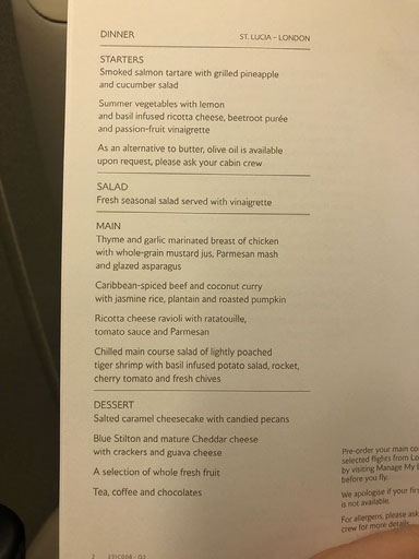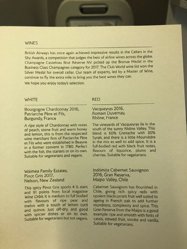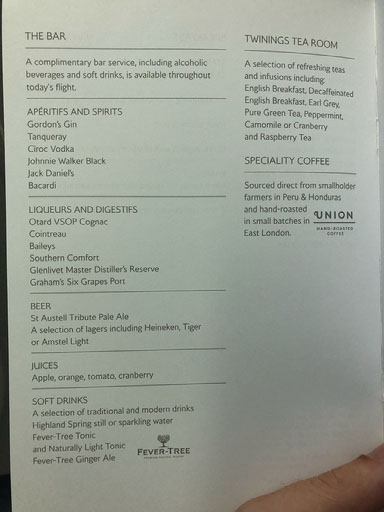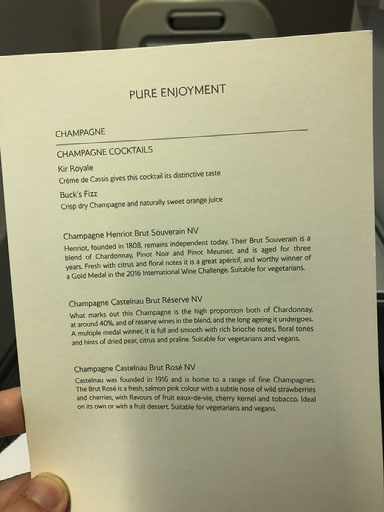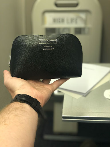 We’re handed menus and amenity kits. Hang on, this menu is excellent and so are the kits. I thought both would be a significant step down from first class, and how wrong I was.