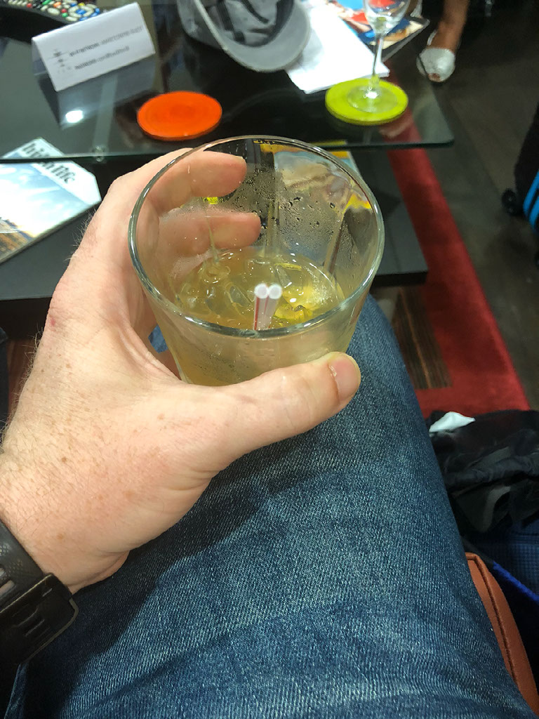 Well this is all rather excellent. I pour a couple of champagnes and get online to write up the drunken escapades of the previous day. Sadly, the lounge rapidly fills up over the next 10 minutes and virtually all seats are taken, including the four around us by a couple of couples who’ve become fast friends during their resort holiday. We’re treated to their conversation for the rest of our time in the lounge, which is fucking mental, like sitting through a Caribbean episode of Duty Free except with the class tensions swapped for long drawn out sexist remarks punctuated with Sid James-esque wheezy laughter.