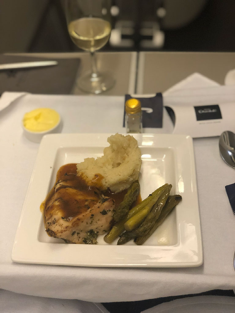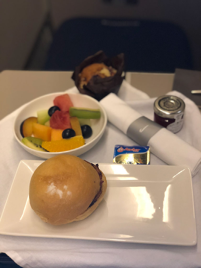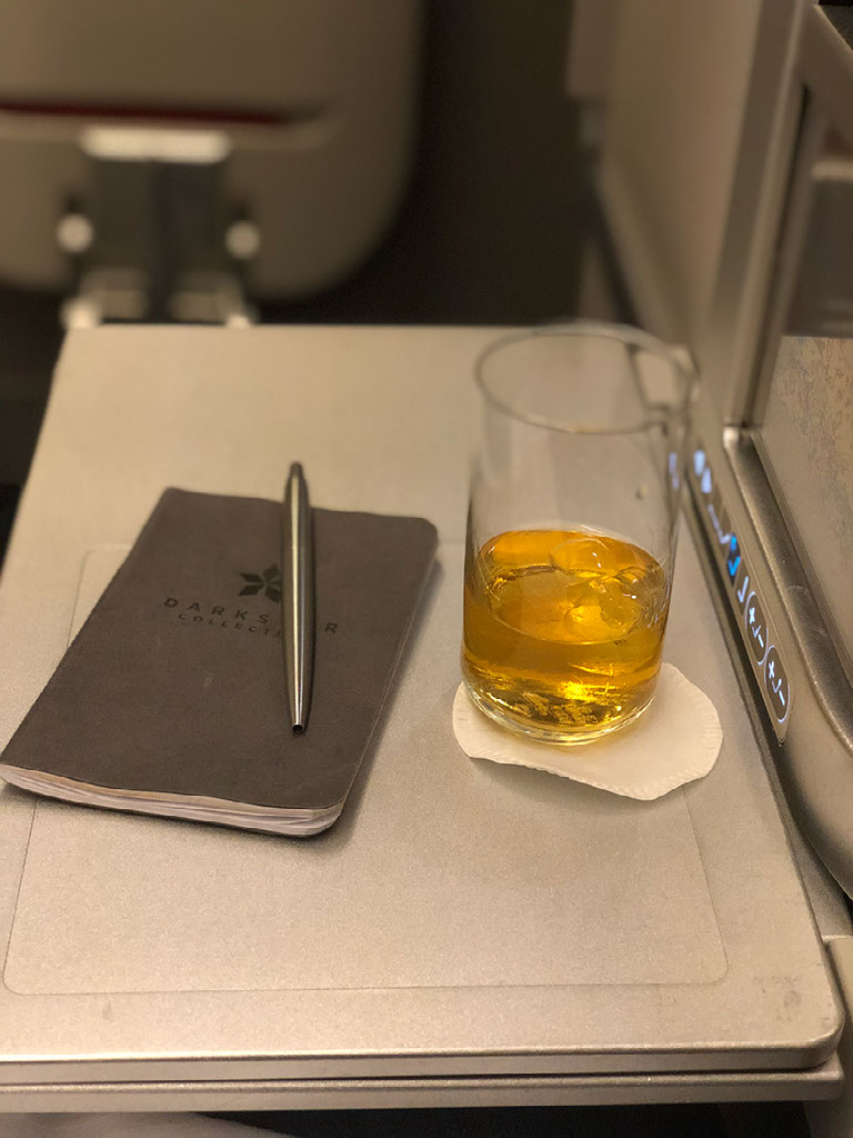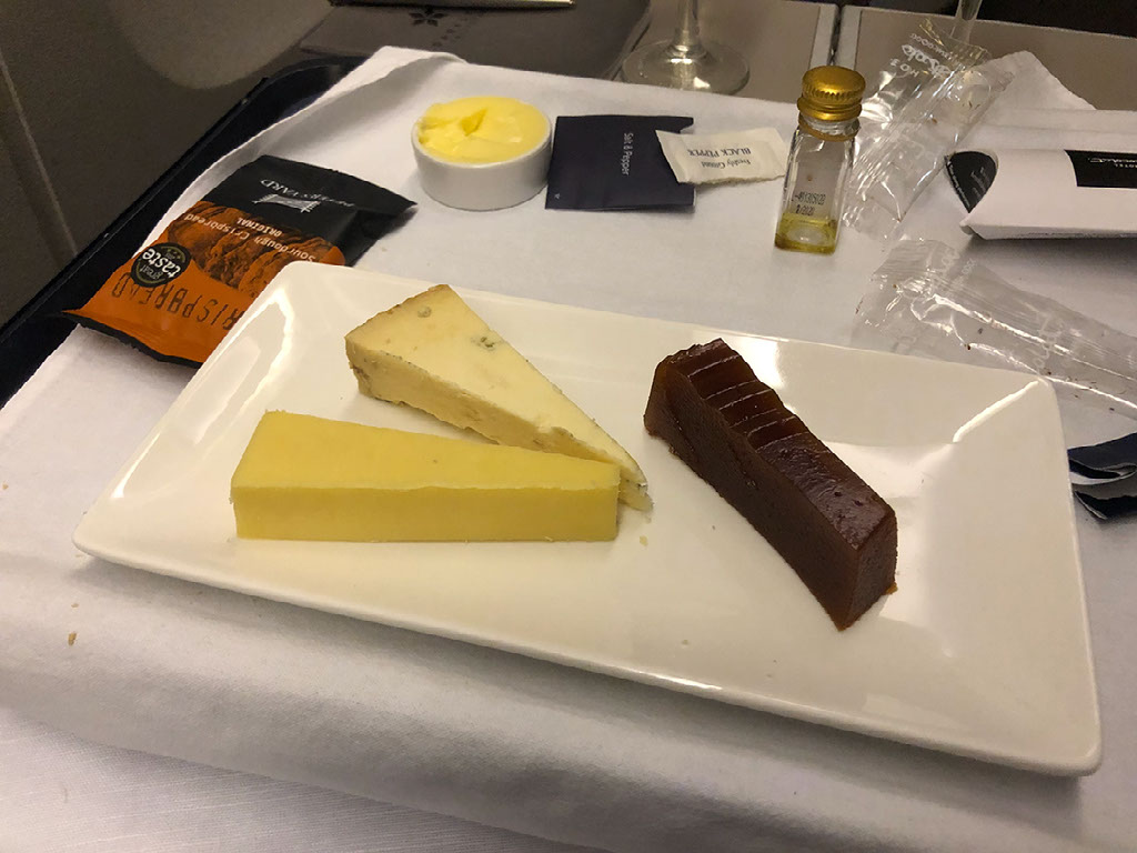 Yes, I’ll have a cheese plate, thanks. Even though it’s a red-eye flight service is unhurried, and I’m kept on the booze. When this plate and tray are cleared away I’m asked if I’d like anything else. Sure, how about a glass of whisky?