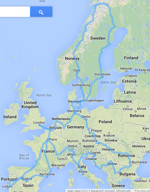 In July 2013, yours truly and several of the gents with whom I shall be spending a chunk of July 2018 got on a train. Then we got on another train, and another, and another. If you read the graphic above clockwise from London, that’s the route we took.