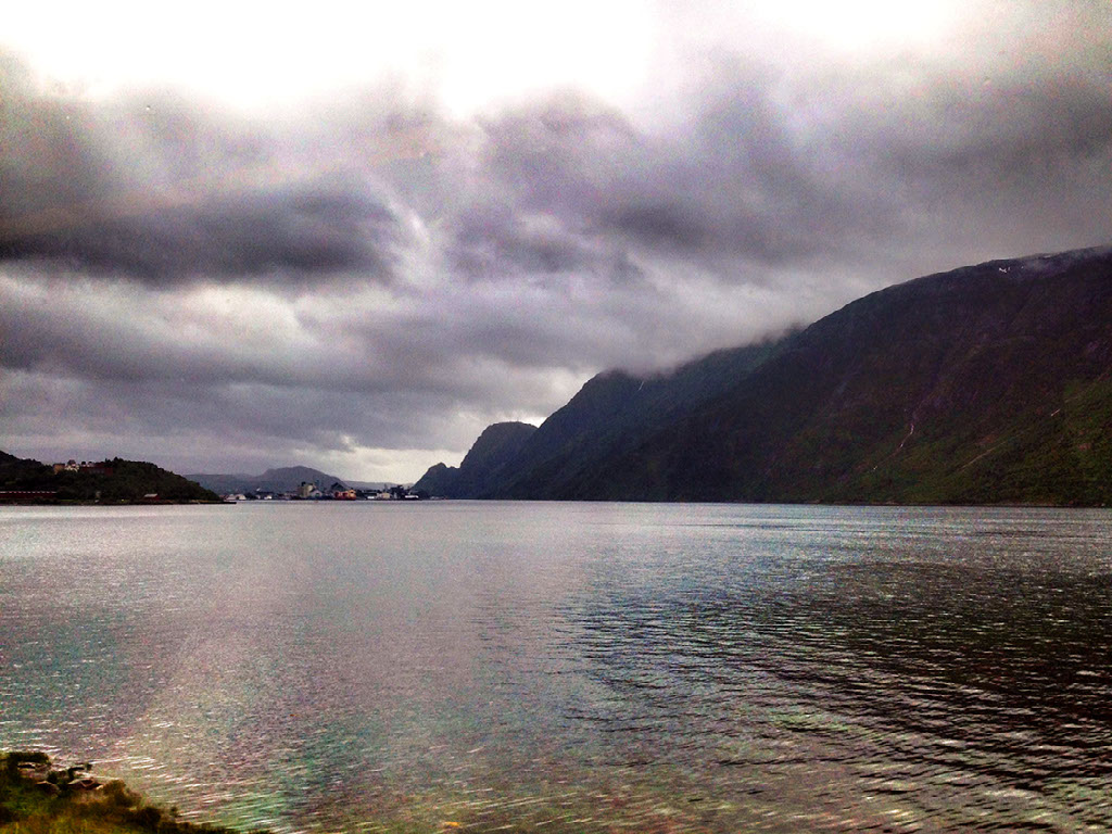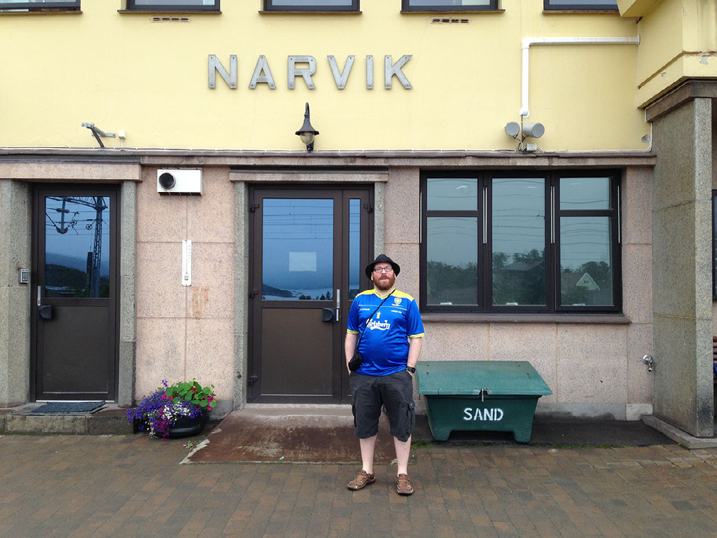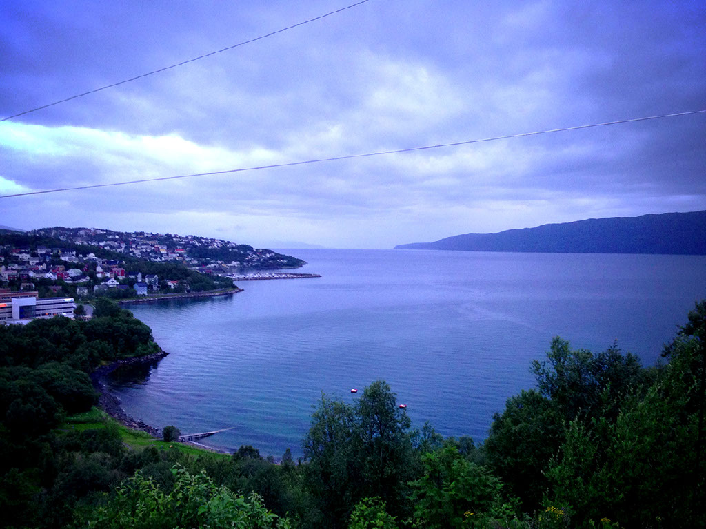 The answer was “a lot”. The train finished at Fauske, at which point we got on a bus even further north, for like 4 more hours or something including a boat across a fjord, until we reached Narvik. The photo behind this text was taken at, like, 1.30am or something. Cloudy yes, but dark no.