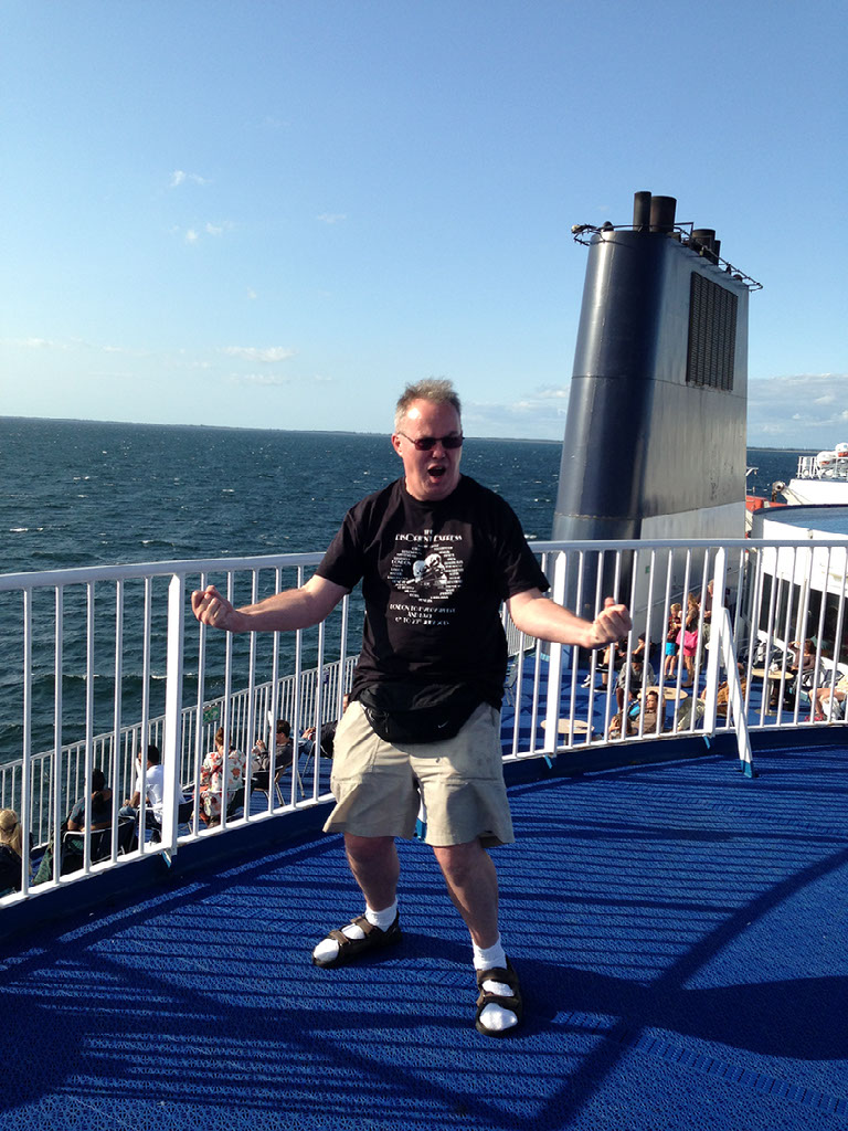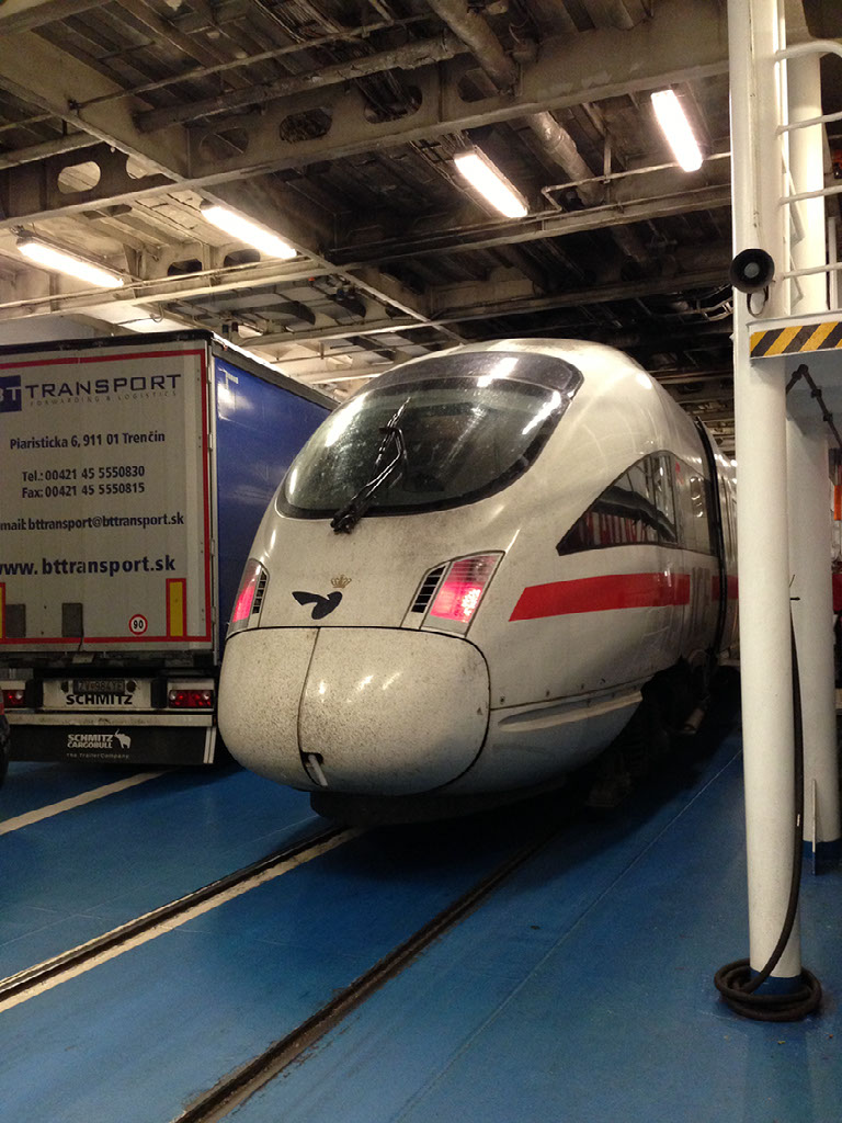 Back to Copenhagen on yet another delayed train, this time we really did miss our connection. Bugger. We sorted our tickets for the next Hamburg service. Mike had McDonald’s for lunch. We got a train that itself got on a boat. Victory!