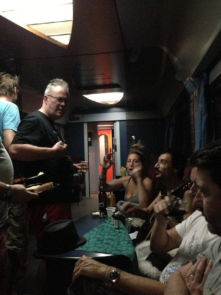 The bar car - a fully fledged pub on wheels - was smoky and loud. There were power cuts. People played mandolin songs. The train crew got wasted with us. It was beaufitful carnage.