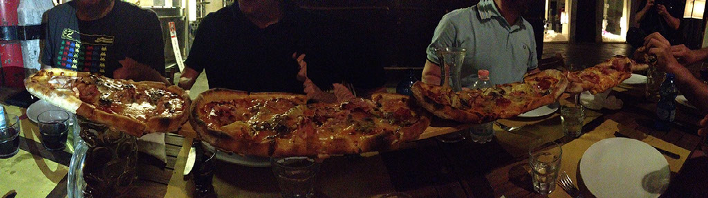 Our evening in Venice was entertaining enough to warrant a blog post to itself. We had this giant pizza, and a perilous walk back to the curfew-enforcing hostel we were staying at.
