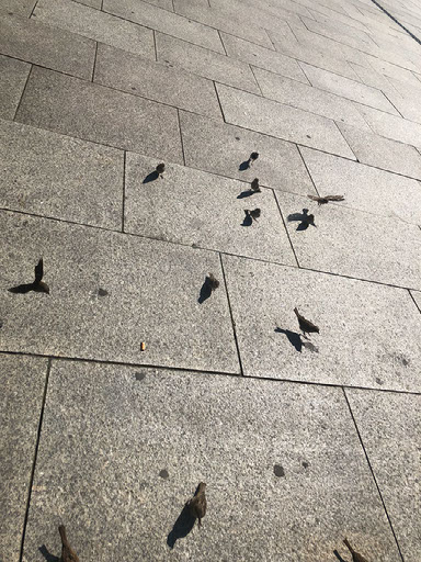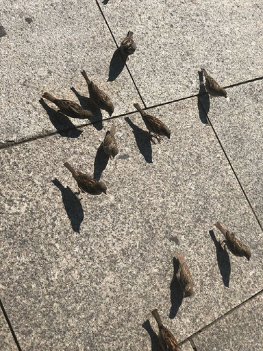 Anyway. Outside there are lots of birds. Ed tells us there are hardly any pigeons in Berlin, but tons of these smaller cuter birds. Sparrows? No idea. “Just as much of an unhygienic pest” though.