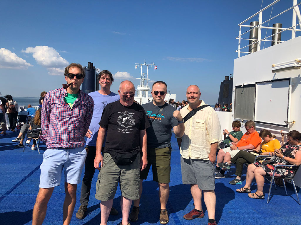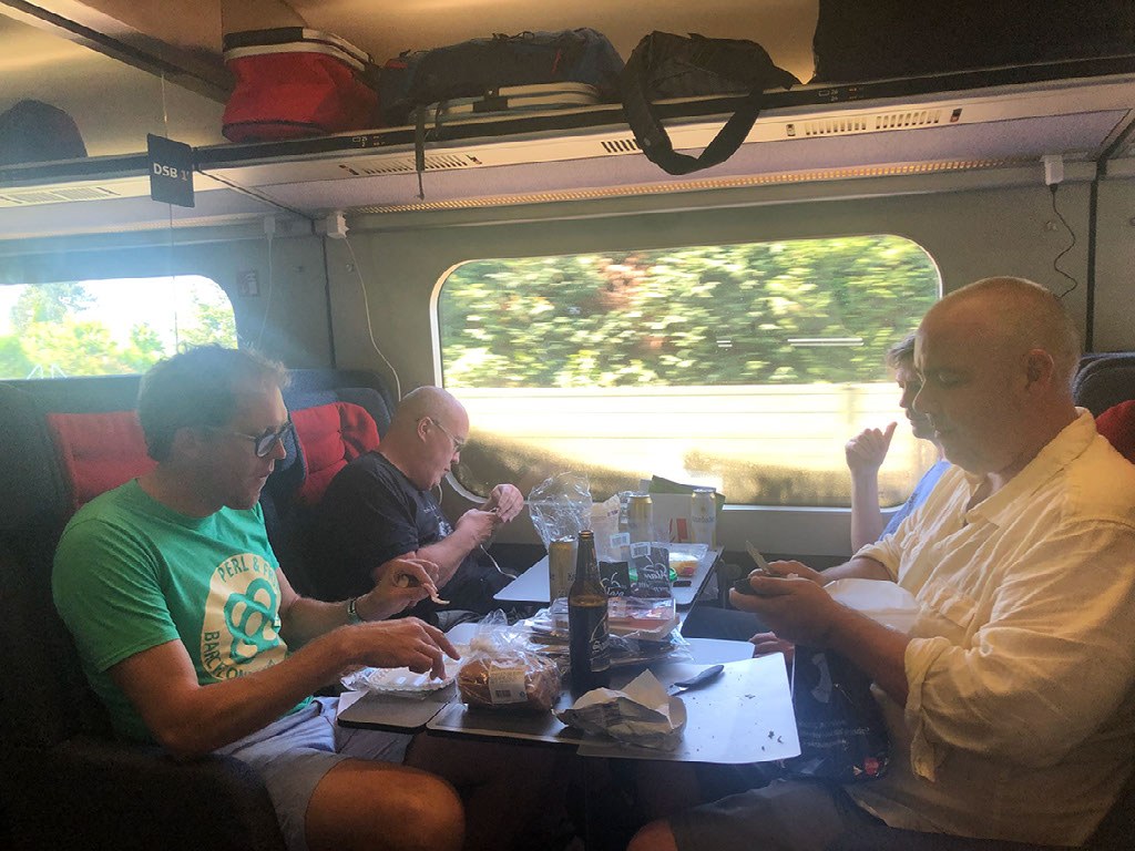 Reconnecting via facebook messenger, a couple of scouting parties reach us and decide that our vestibule is the better place to be, and after a while we’re all stood there. Fuck it, anyone want a beer? This is a big pile of bullshit but, deep breaths, we’re now en route to Hamburg, finally, and might even still make our connection… with 3 minutes to spare. Let’s have a drink. Mark continues his dedication to drinking from glasses even while standing in a corridor.