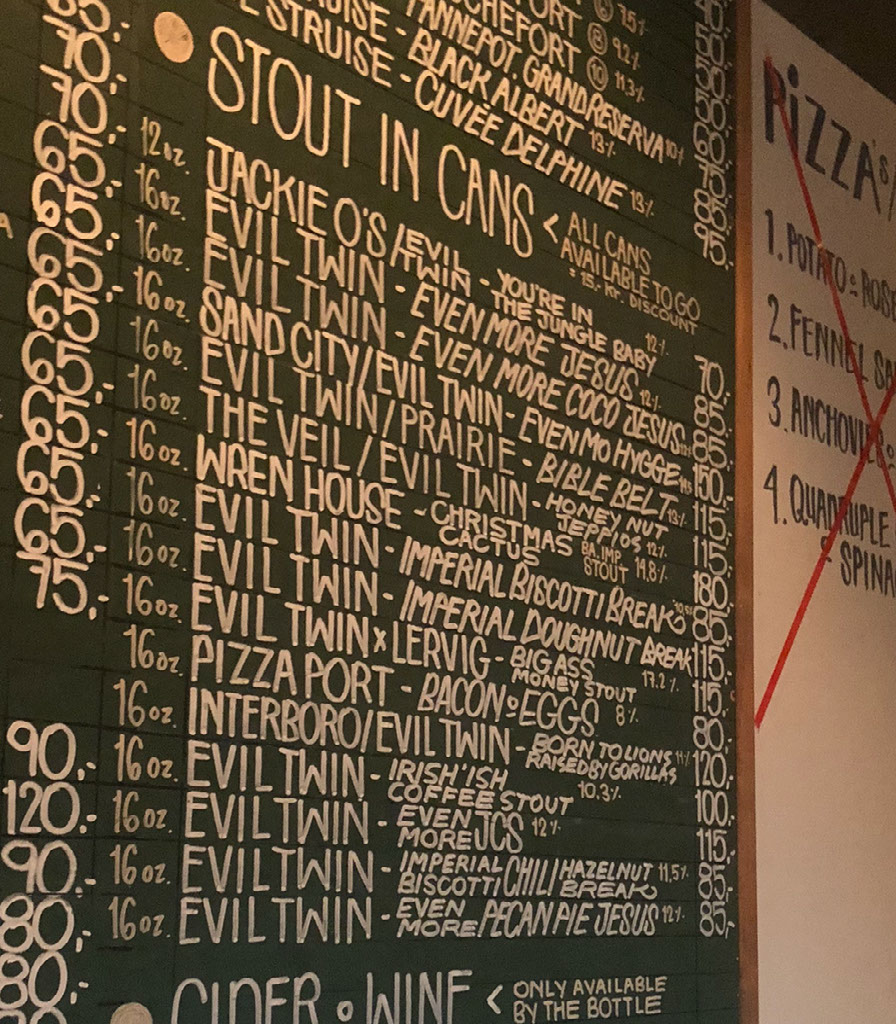 A further 10 or minutes later and we’re finally at Evil Twin/Himmeriget. The very first thing that my eyes are drawn to is a drink named after my first ever username on a computer of any sort (albeit one letter missing).