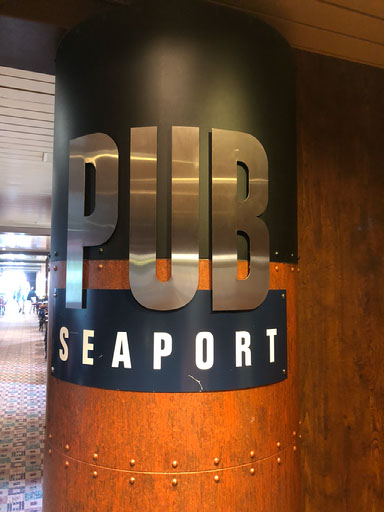 It’s still way too hot outside, whereas indoors it’s lovely and airconditioned. I grab a table in “Seaport Pub” and start typing.