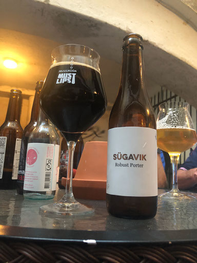 She’s much friendlier when I order because I know what I’m doing. I want two Kwak, a fruity local IPA – actually make it two of those – a local chocolate porter or stout and, for me, I’ll have a chilli porter if you have one. She says yeah, they do have one, but being Estonian they’re not very good with chillis but they try. That was short-selling it, because it tasted great. Terviseks, again!