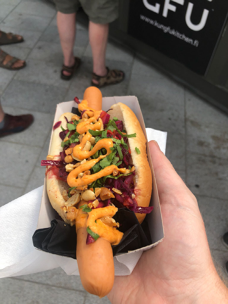 Back at the station with a couple minutes to spare before incurring wrath, turns out the others are already carting the bags back upstairs. So now it’s time to head to another port, by tram, for our next ferry. Trams in Helsinki are pretty cool, and fast – not speedy, just that the city isn’t so big so it doesn’t take long to reach a terminus – and we’re outside T2 admiring the reflection, and staring at the “Buns and Beers” truck. I don’t fancy a beer, but a bun would be nice.