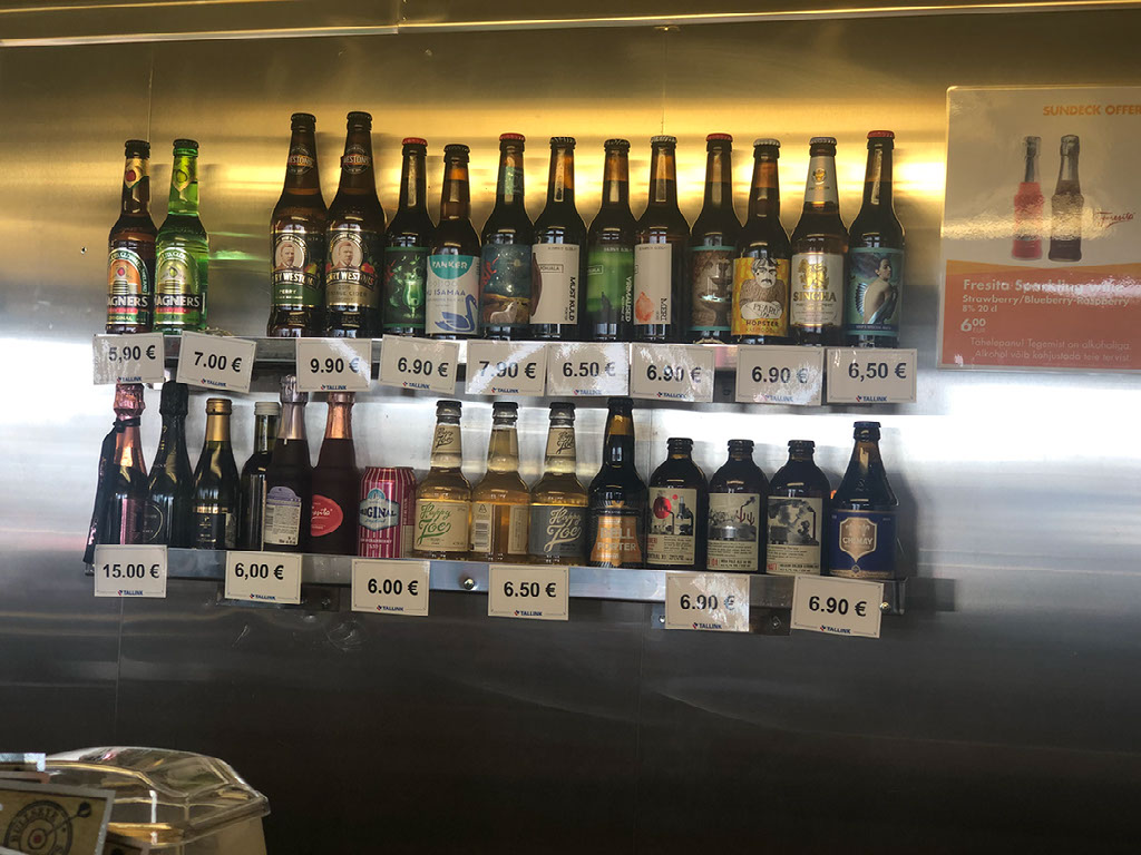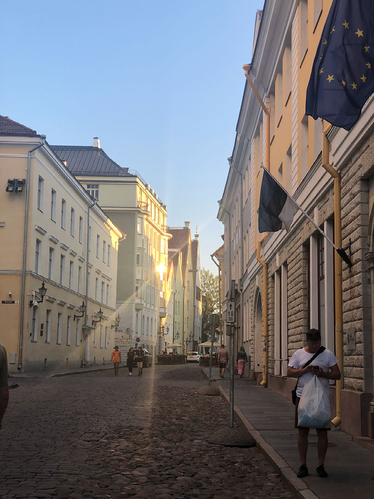 About an hour after departure, some music starts. Oh, there’s a guy on stage with a guitar and he’s singing and so is some lass hidden behind a pillar. Soft rock. I manage to get halfway through my diary entry for the previous day and then am told to get back to the cabin. It’s only a 2 hour ferry here and we have to toast the border we’ve just crossed, since land is now visible outside. Hi, Estonia. 🇪🇪 You’re my 60th country (using UN member states as my criteria). Terviseks!