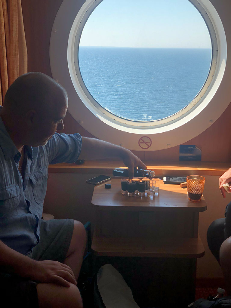 We have a single cabin on board, essentially our own private left luggage. It’s cramped with 7 people and 14+ bags so fuck it, time to go explore. At the back of the boat is a bar selling a range of craft beers so, hang on a minute, I’ve got an idea.