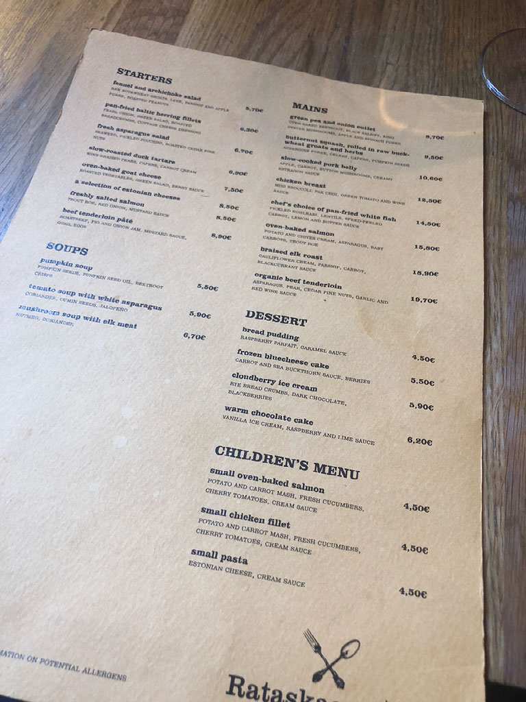The meal is at Rataskaevu 16. That’s basically just the address; many businesses here don’t seem to have names, which when you think about it is kinda fair enough. What’s wrong with just using the road name and number?