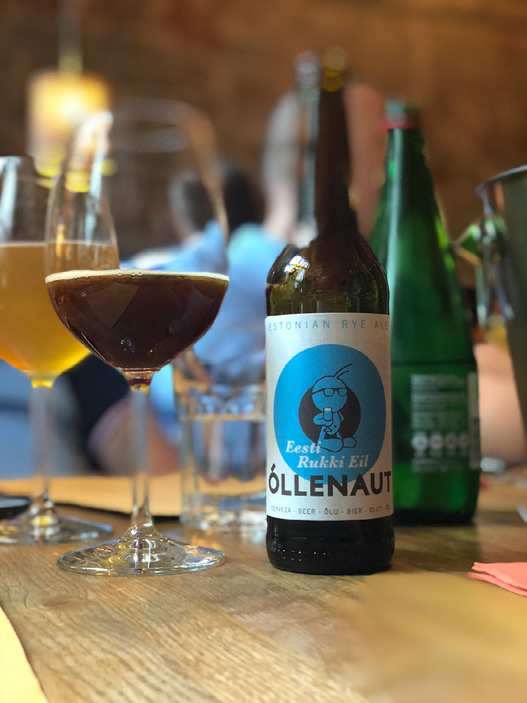 Our waiter is a very friendly guy who goes to great pains to discuss everything on the menu, liquid and solid. He asks what we’re up to, how we know each other, tailors drinks to food, has answers ready to most of Andrew’s culinary inquisition, and even at the end of the meal has recommendations for where to go drink craft beer (which we already knew, but hey). He also compliments me on my Estonian, since I’ve learnt two words: terviseks (cheers) and aïtah (thank you). “Thank you” is particularly easy to remember because it’s pronounced mostly like “aye, ta”.