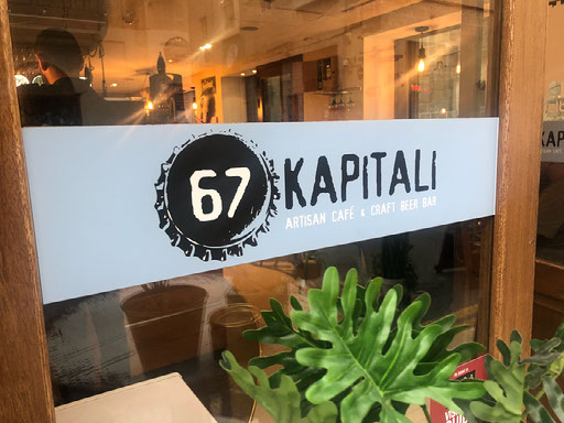 I’m heading to a place Google maps has told me to visit, pausing briefly at a place that looks like an English boozer and proudly proclaims that it sells craft beer. The menu isn’t all that though, so I persevere on and it’s only one block to my intended destination, 67 Kapitali. I love their modified Guinness sign, and inside am greeted with “hello mate, what are you after?”. Well, do you have any dark beers? Yes, we have two, a stout and a red ale. I’ll have the stout please. OK, go sit down, I’ll find you.