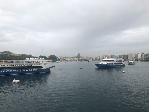 It’s only a short ride, and there’s an immediate difference in feel between here and Valletta. The ferry kicks off in a district known, funnily enough, as Sliema Ferries – and there are tons of them. The waterfront walk is full of people trying to convince folk onto their own harbour/island cruise, and the roads are full of open top bus tour companies. It’s entirely unlike what I saw yesterday in the capital and I like it less. Even so, I walk past every one of these stalls twice because (a) I want to rack up the steps (b) I want a pic of Valletta from this side.