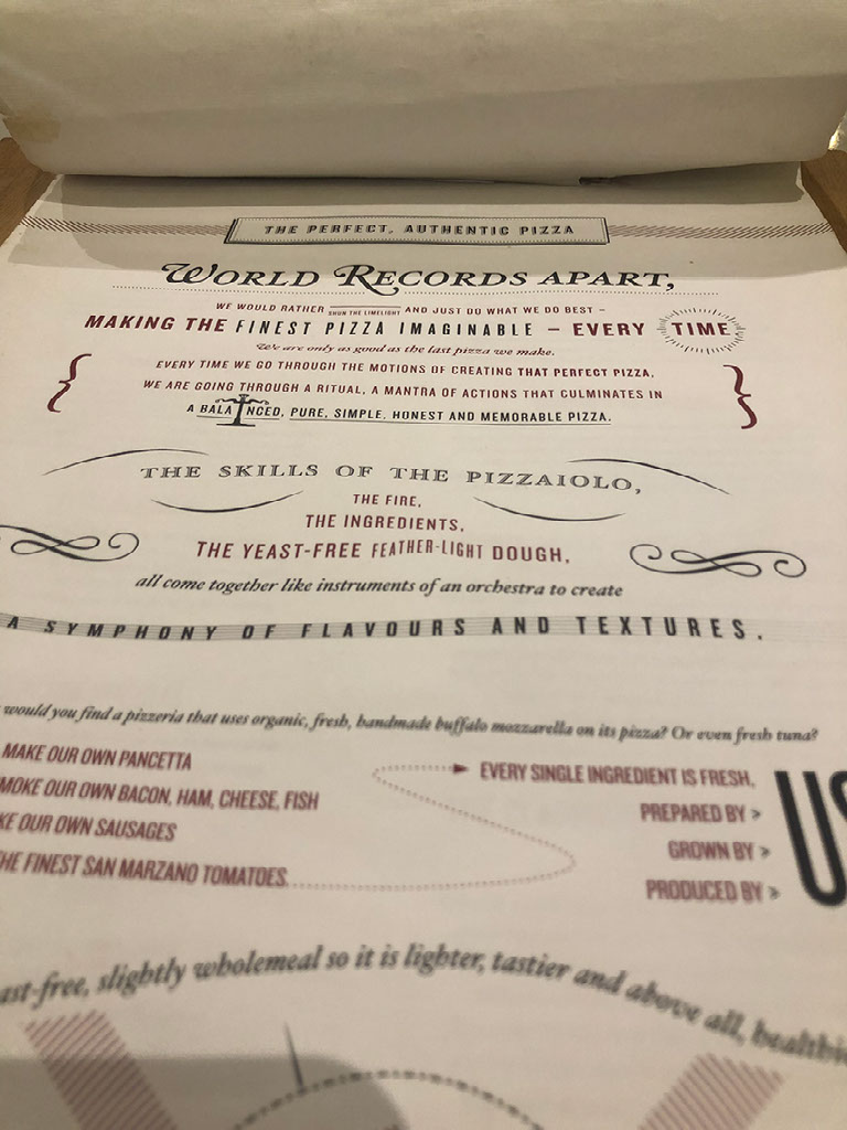 In the end I think screw it, I’ll just walk back towards the hotel and see what I go past. A vague desire for pizza becomes much less vague when I approach Margo’s authentic Neapolitan pizzeria. It’s empty and welcoming and the menu is very impressive.