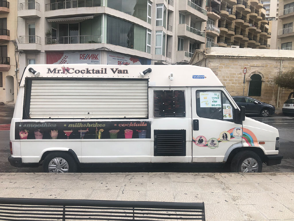 There’s “Mr Cocktail Van” parked up. He has 10 types of Mojito, y’know. Wonder what music he plays when driving through housing estates on a Sunday?