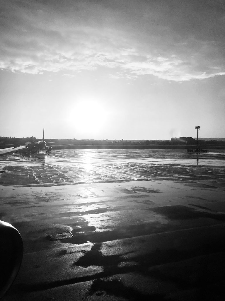 I’m welcomed in and immediately go onto the outside terrace, which is a mistake as the weather is windy and cold and wet and the seats are all piss wet through, especially the ones that look like they’ve had multiple bottles of red wine spilled on them. But briefly I can stare at planes out there.