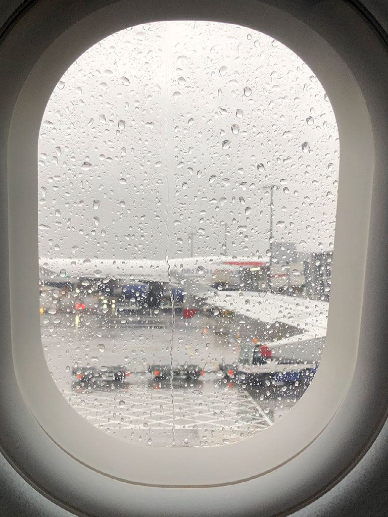Started to pack at about 0600 or so, took the bins out, and come 0625 I was bored and wondering where our driver was. Immaculately turned out and very friendly, he turned up exactly on time – in a fucking Merc – and droves us the 285/X26 route to Heathrow. It’s already rush hour and the traffic was terrible the whole way, while the weather started bleak and moved through terrible all the way to apocalyptic. Bah.