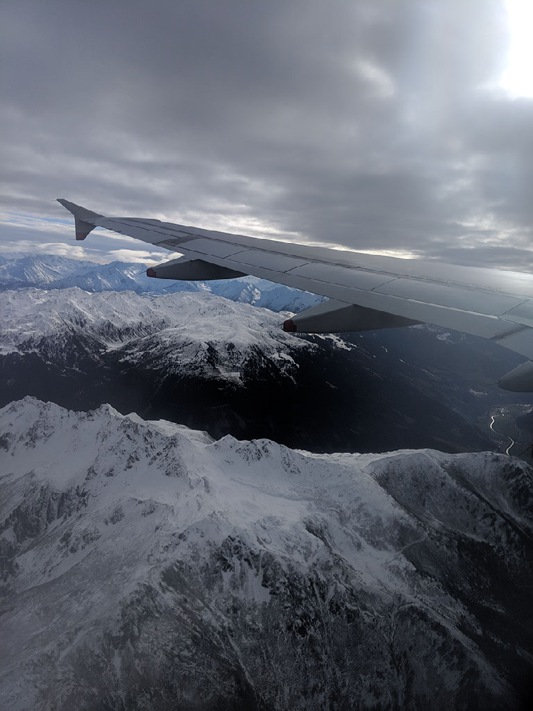 Adding to the unpleasantness, whenever a member of crew makes an announcement over the tannoy there is loud screeching feedback. Lastly, having repeatedly stated how fantastic flying to or near Innsbruck is, we’re stuck in low cloud such that Helen can’t even see any mountains out of her window. For fucks sake! But then…