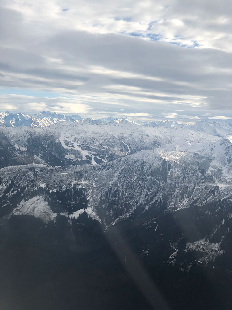 Cloud starts to properly clear and hurrah! The alps! The best descent I’ve ever experienced is paying dividends again.