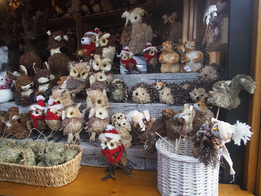 We retrace our steps from earlier, back to the river and the market next to it so Helen can buy some pine cone animals. Things are way more crowded with lots more children about, and the whole town smells of gluhwein. Also, being dark, we now can’t see the mountains so everything is just that bit worse than it was before we ate.