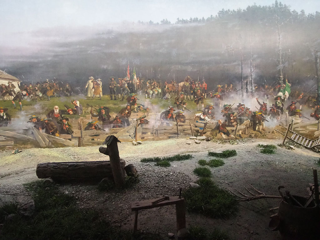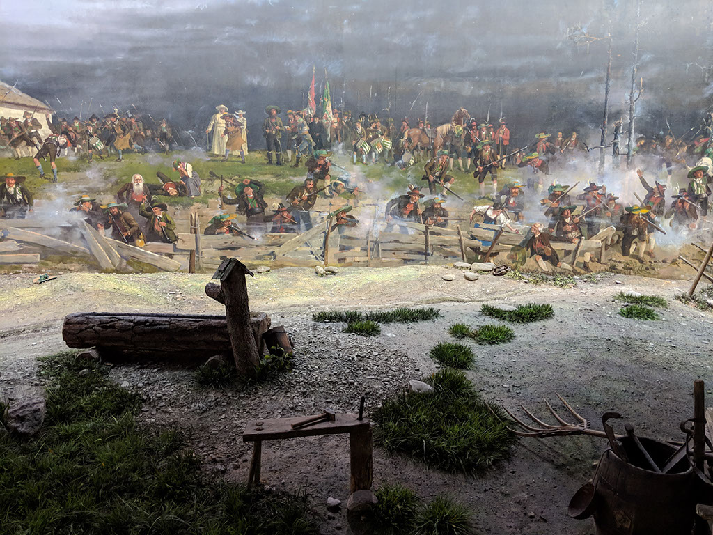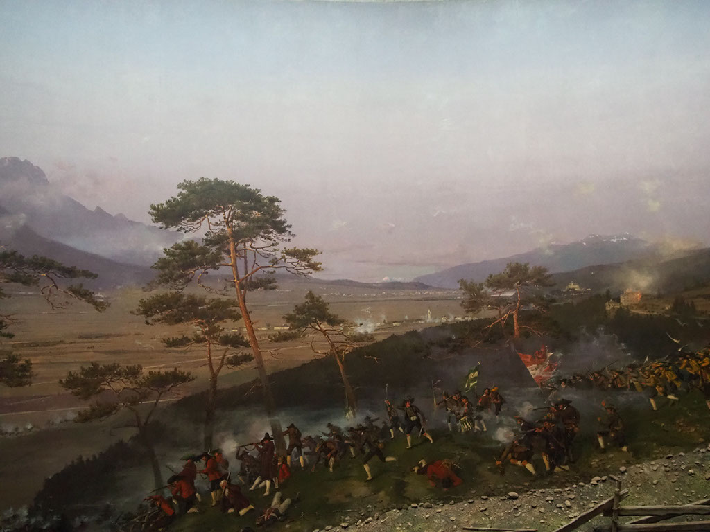 Eventually, just as they’re talking about how Napoleon fought 4 battles around here, losing 3 before winning the 4th and thus the war… and then introduced a load of progressive policies, separated church from state, and did a few other nice things … we reach Bergisel. It’s pronounced “bergEASEl”, not “BERRghee-sell”.