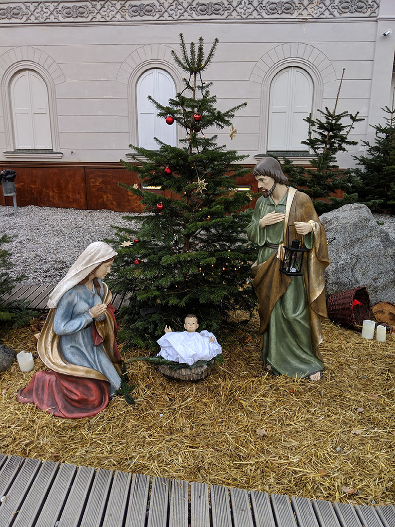 There’s loads here. Mostly we’re interested in the Christmas market, still pretty desperate for raclette. There is no raclette. There is a Jesus though, and about 8 stalls. Nothing much grabs us, and since it’s gone 2pm and neither of us have eaten yet, getting on the glühwein isn’t a good idea right now.