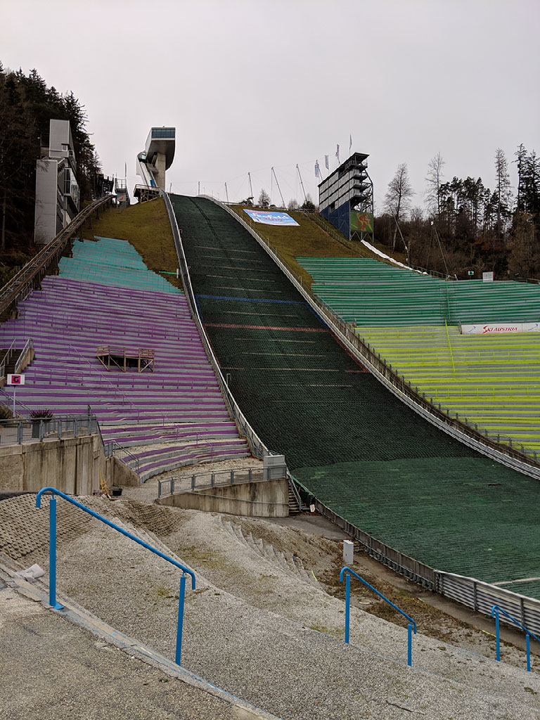 The Innsbruck sightseer bus is no open-top double decker thing but a single decker bus that looks exactly like all the other buses but for the fact that at each seat there are some surprisingly good headphones, through which comes a surprisingly good audio tour. Punctuated with local music, the commentary between each stop gives interesting tidbits of info about where we are and where we’re going.