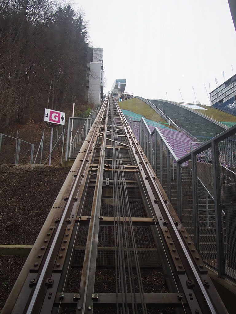 The first lift is for ski jumpers only. How do you actually learn how to ski jump, I wonder? I don’t recall the Eddie the Eagle film really going into that much depth about how someone makes their start in the sport. It seems to have a pretty high fucking barrier to entry, no? Anyway. There’s another lift around the back that goes to the restaurant. I really fancy lunch at the top of a ski jump.