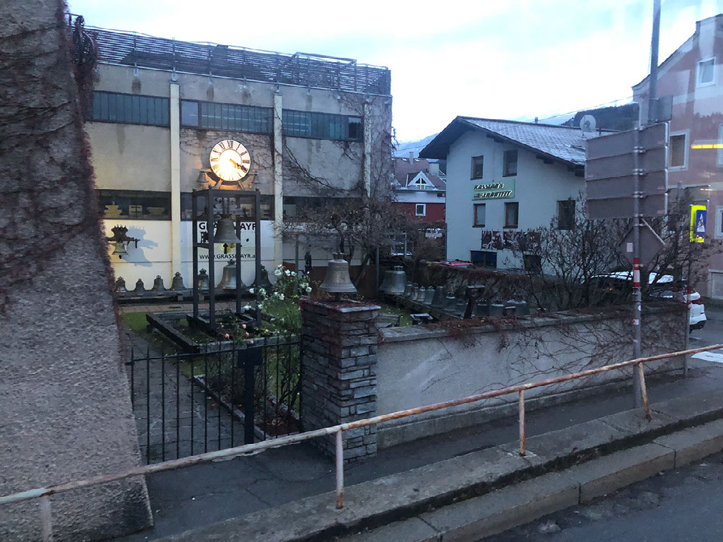 So with nothing else worth getting off for we decide to complete the circuit. The audio was fun, after all. Back on the bus we go past a church which has the “largest virtually undamaged renaissance organ in Austria”, and a bell foundry. With longer gaps between interesting stops, the amount of local music increases and starts to do our heads in. We learn that 20% of Innsbruck’s residents are students, and that the big Jesus statue on the bridge was scandalous because it was naked.