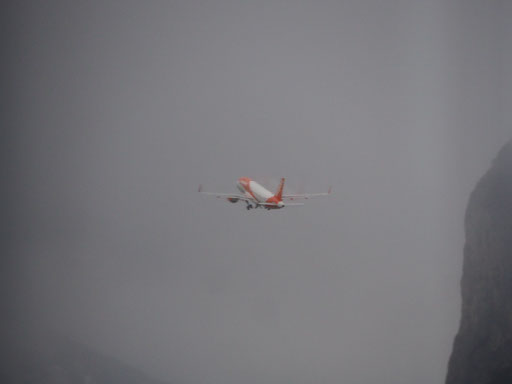 We have a glass of prosecco each, to toast the great end to a great weekend and also steel Helen’s nerves for the flight ahead. After the horrors of the flight out plus the enormous bravery required for cable cars and funiculars and ski jump heights, I’ve moved our seats to the curtain-envy front-of-economy so that we’ll be able to buy gin as soon as possible. While we watch the runway the weather is getting worse and worse, clouds dropping very low and we’re both wondering about how turbulent the plane will be.