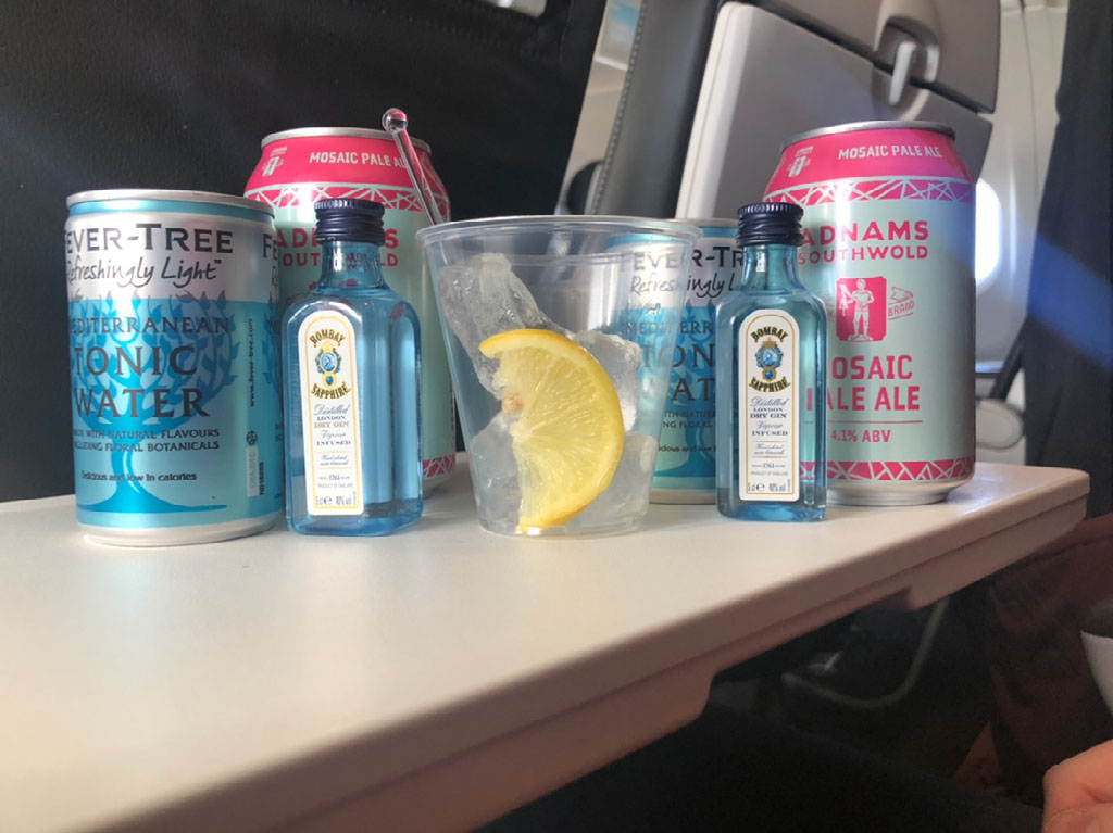 In actuality the flight is smooth as anything; the ascent is disappointing because the clouds mean we don’t see any Alpine vistas, and it’s basically cloudy the entire way back to London. When the M&S trolley comes along we each order a beer with gin+tonic chaser, though in reality I have both beers and Helen sticks to the strong stuff.