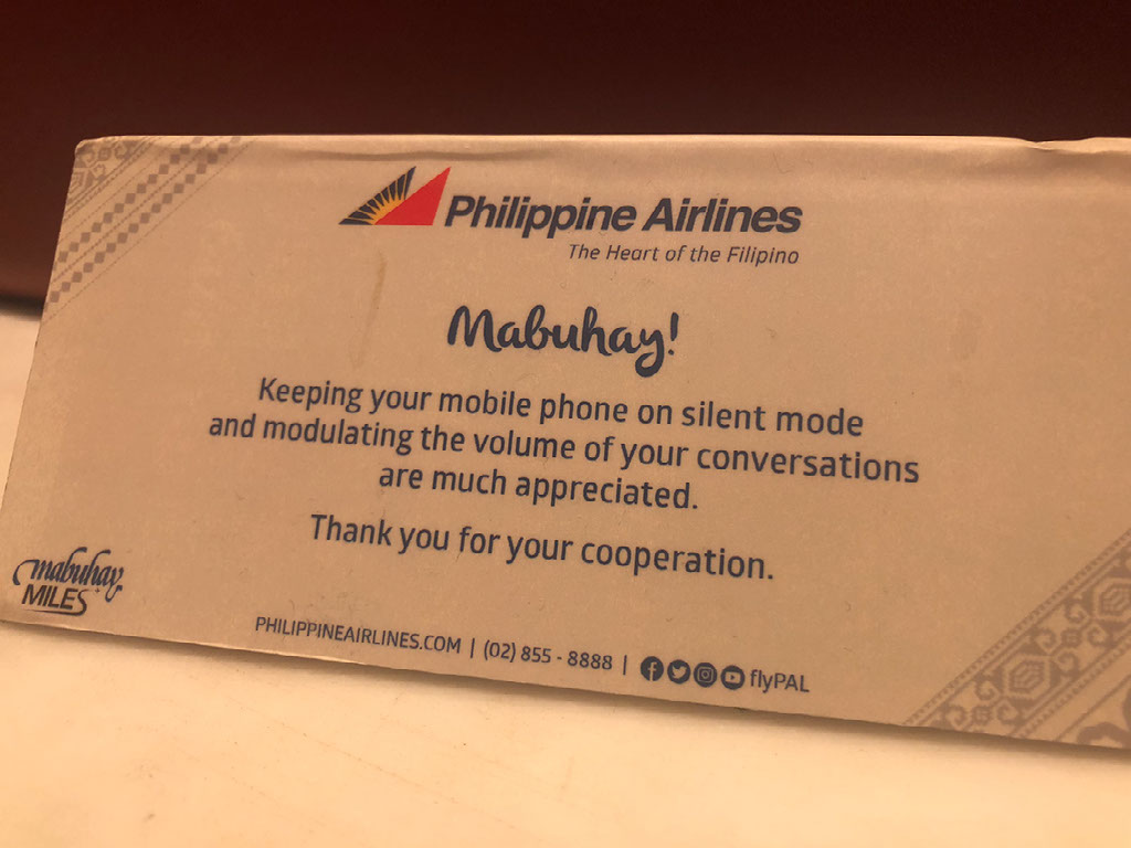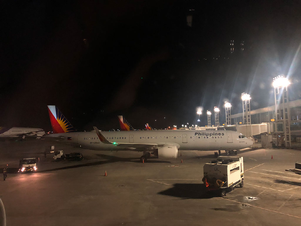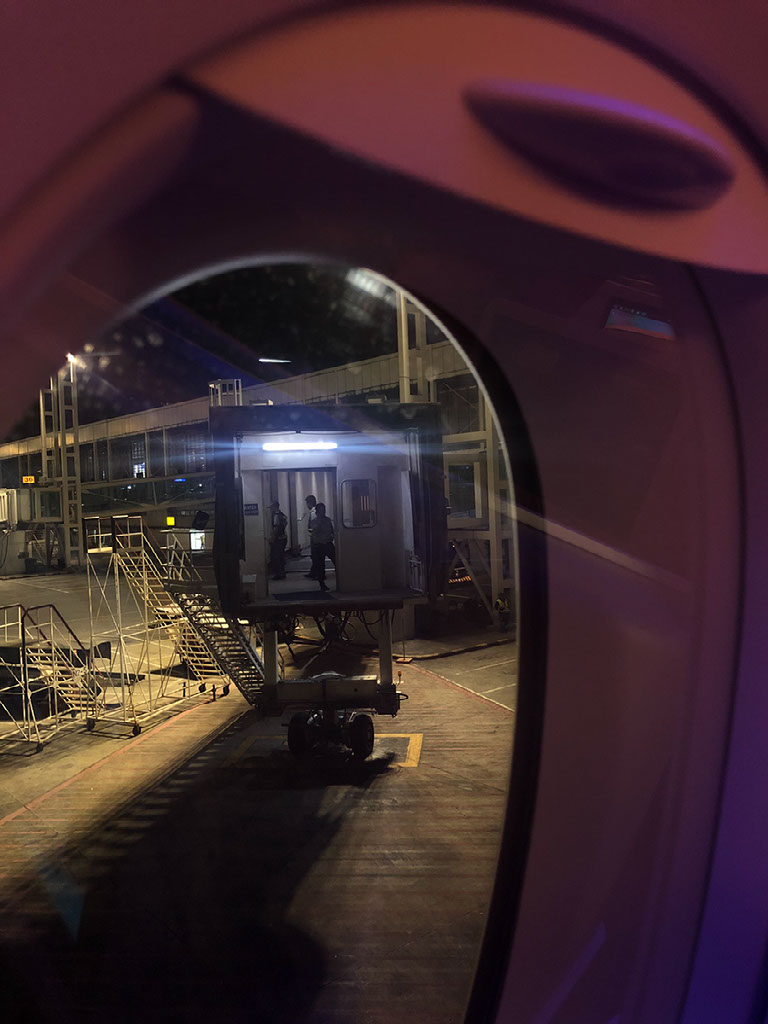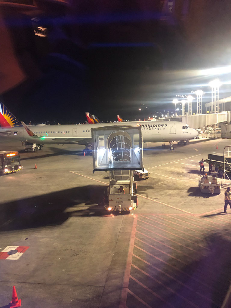 We end up touching down late, at 1905, and it’s a viciously hard landing completely at odds with the smoothness of the descent. We’re welcomed to Manila and told the local time and wrong date: “correction, it’s January 11th!”. As usual the instructions are to not stand up until we’re at a complete stop and the captain has turned off the seatbelt signs, and I shit you not I’m the ONLY person in business class that obeys this instruction.