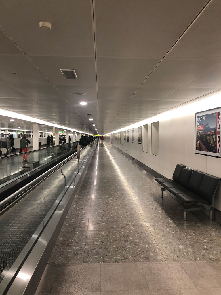 But then the doors ARE open, and the folk in front of me seem to have forgotten how stairs work. These really aren’t as perilous as they make out. The bus is pretty nice, for an airfield bus, and I get a solo seat at the back. We’re driven around the perimeter of the terminal and into a tunnel marked BUS GATE ARRIVALS NORTH WING.