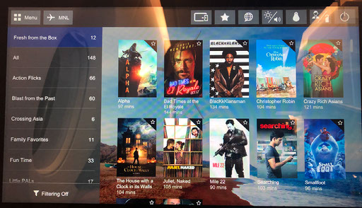 Food service is available on a dine-when-you-like basis but they don’t proactively offer that (it’s written in the menu) and I’m happy to eat as soon as we’re airborne. On the TV I play Shanghai Knights and get to grips with the fancy remote control that has a slidey-touch bit (not a screen) for use as a mouse cursor.