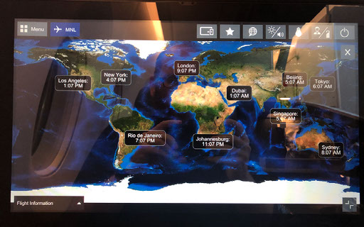 The entertainment system has a thing where you can pair it with your phone or tablet, and use your own device as a large remote or display the in-flight map and stuff. But the map never ever works, and mostly I have zero clue where we are.