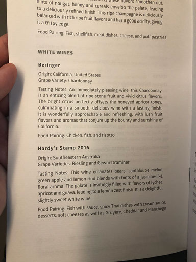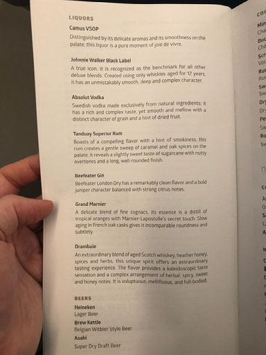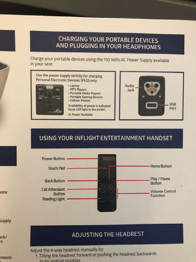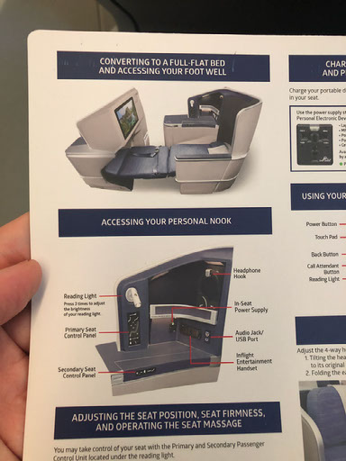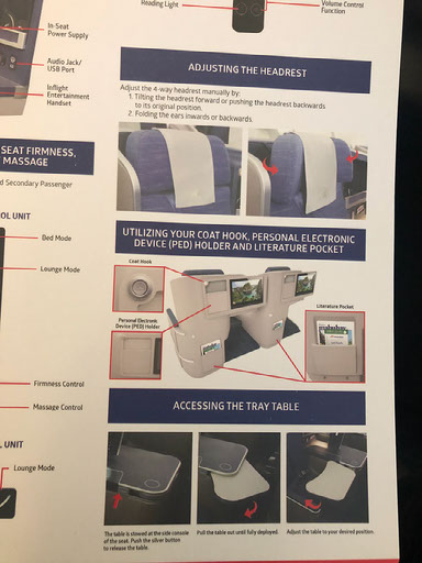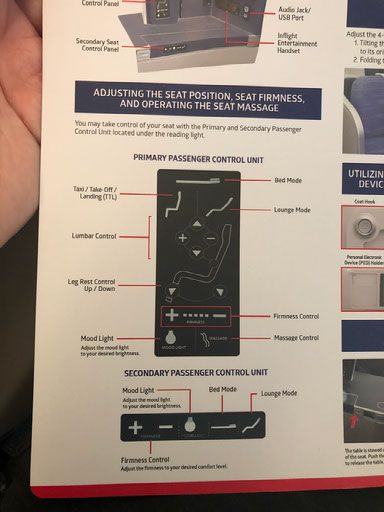 The system also has the business class menu on it, not only for this flight but all the routes the A350 plies. There’s a cardboard menu too, as well as a sheet explaining how to use the seat.