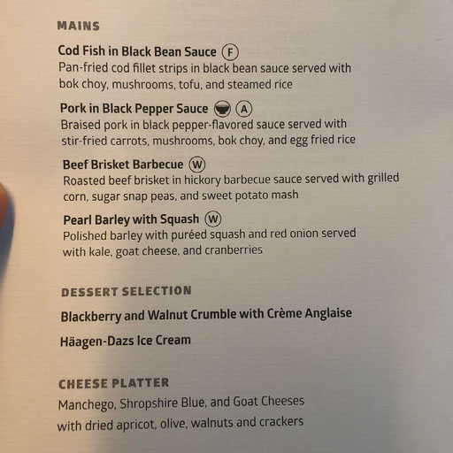Main course is fish with rice. The fish is delicious, but there’s not much to it. There’s no salt or pepper or other condiments provided.