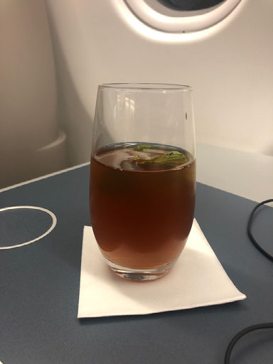 All the lights come on in the cabin with more than 3 hours until take-off. Drinks orders are taken, a hot towel comes, and they ask what I want for breakfast and to drink alongside it. I ask, again, for a glass of whisky and one doesn’t appear. My choice of hot drink is green tea, so before I know it a man has filled my cup with coffee. The woman who took my order comes and takes that away, replacing it with a cup of hot water. I have a couple of pieces of bread with marmalade and then multiple other things arrive.