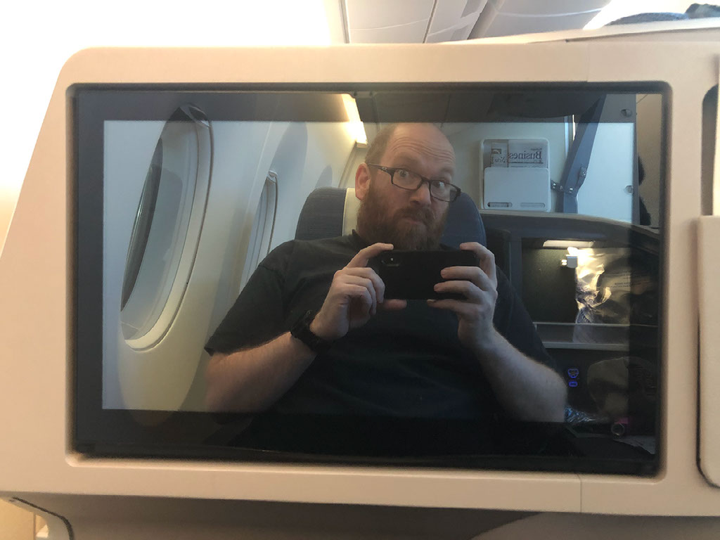 The giant mirror seems to double up as a spectacularly responsive and excellent in-flight entertainment system, at least in terms of screen and software. First impressions are that it’s the best I’ve ever used.