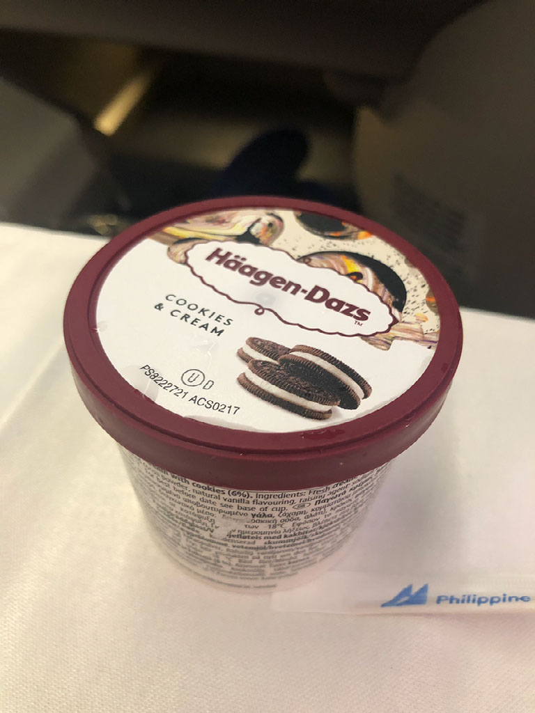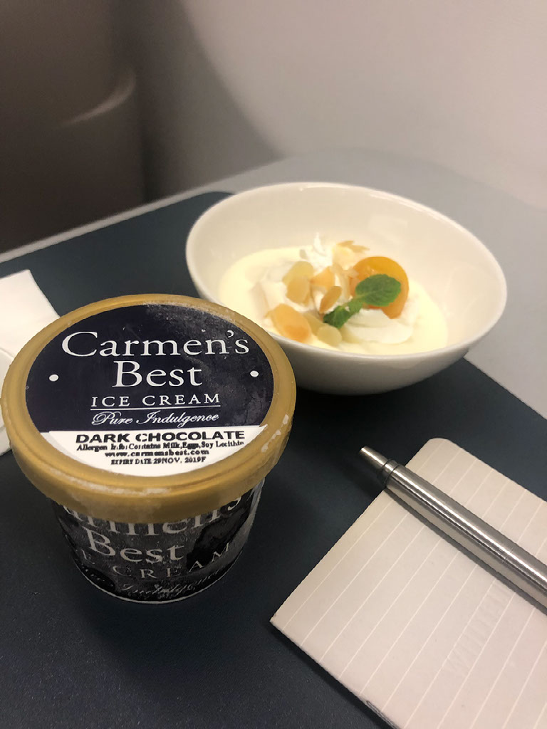 The milkfish is GREAT. Everything else is ordinary, but that’s not a complaint. Unlike the previous flight they are almost filling the champagne glass, and I get a refill too. Just the one though. Double dessert also turns up. Myfitnesspal be damned. Sorry Helen :-(
