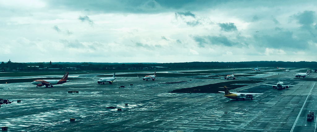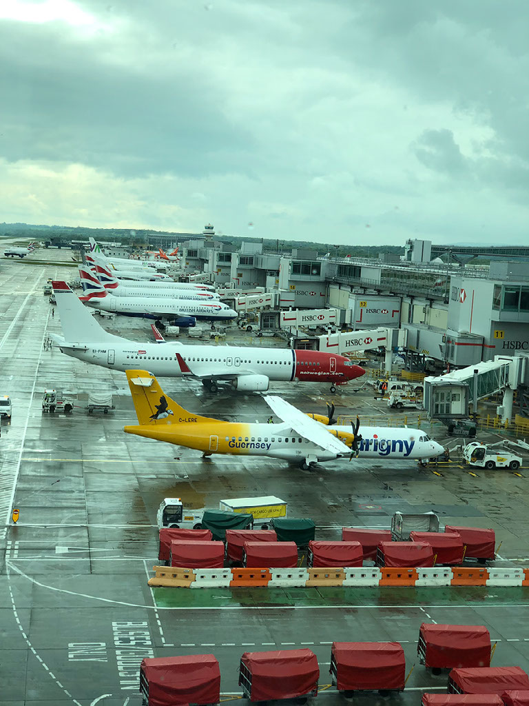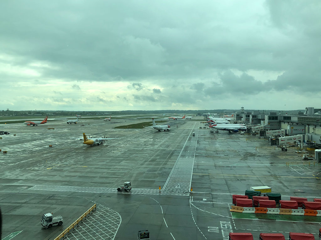 Inside we go upstairs to departures and through fast track security. I like Gatwick fast track, it’s normally actually fast. Today, I set off the alarm when I go through despite not having forgotten to empty anything. This means my shoes need to be x-rayed separately, and I have to stand in the “hands above your head” extra scanner. Bah. But on the other side neither of the staff members so much as even look at me, and I’m through, bemused.
