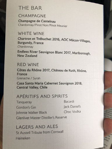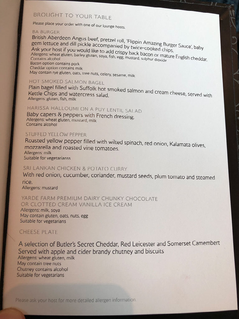 There may be time to grab something else off the menu, and Helen does consider doing so – this forces me into a Big Reveal: unbeknownst to her, when checking us in for the flights on Wednesday evening I’d paid to upgrade us both to business class. That meant we’ll get fed for free on the plane, so it would be unwise to fill up in the lounge.