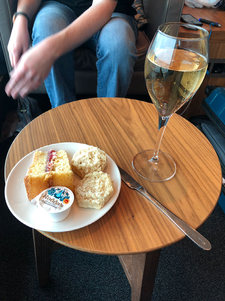 Let’s not get into the pronunciation of “scone” and just concentrate on the fact that I had clotted cream but no jam. Terrible, I know. Anyway, aaaaand relax. Holiday has started proper now we’re in the lounge, staring out the window at all the planes jockeying for position in the grim weather, fizzy plonk in hand. At work, a couple of hours prior, I’d been asked by my product manager whether I like to drink when I’m travelling. Yeah, a little…