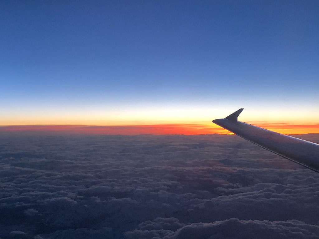 As we fly south along Italy’s spine, the sunset looks lovely.